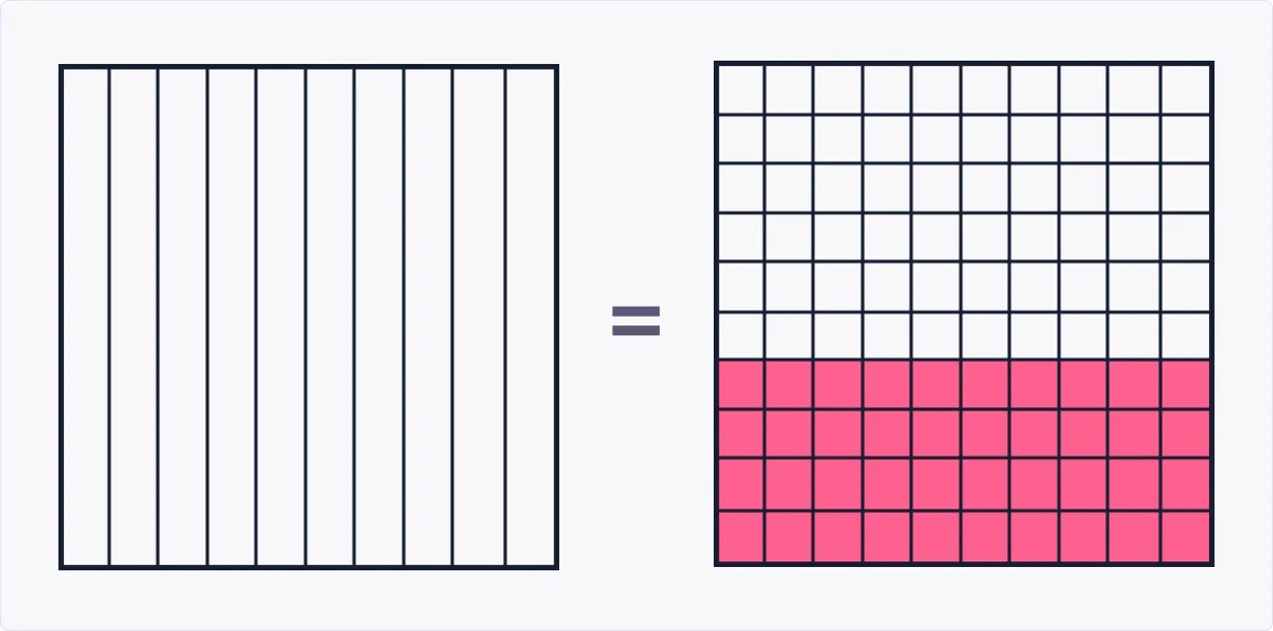 Equivalent fractions with fraction models (denominators 10 & 100)